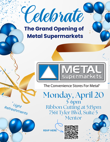 Join us for the Grand Opening/Ribbon Cutting of Metal Supermarkets. Light refreshments will be served.
