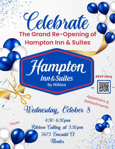 Join us for the grand re-opening of the Hampton Inn & Suites. Tours will be available along with refreshments! Ribbon cutting will take place at 5:30pm