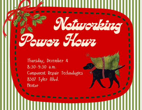 Join us for Networking Power Hour along with the Eastern Lake County Chamber for a festive holiday themed event at Component Repair Technologies. There will be lot of great door prizes, breakfast items, optional tours of CRT and more! Be sure to wear your favorite holiday attire!